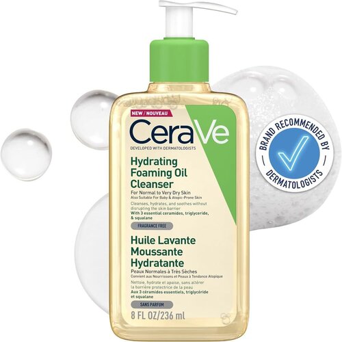 The CeraVe Hydrating Foaming Oil Cleanser 236ml is a gentle, oil-to-foam cleanser for normal to very dry and eczema-prone skin, designed to effectively remove makeup and impurities while providing lasting hydration.